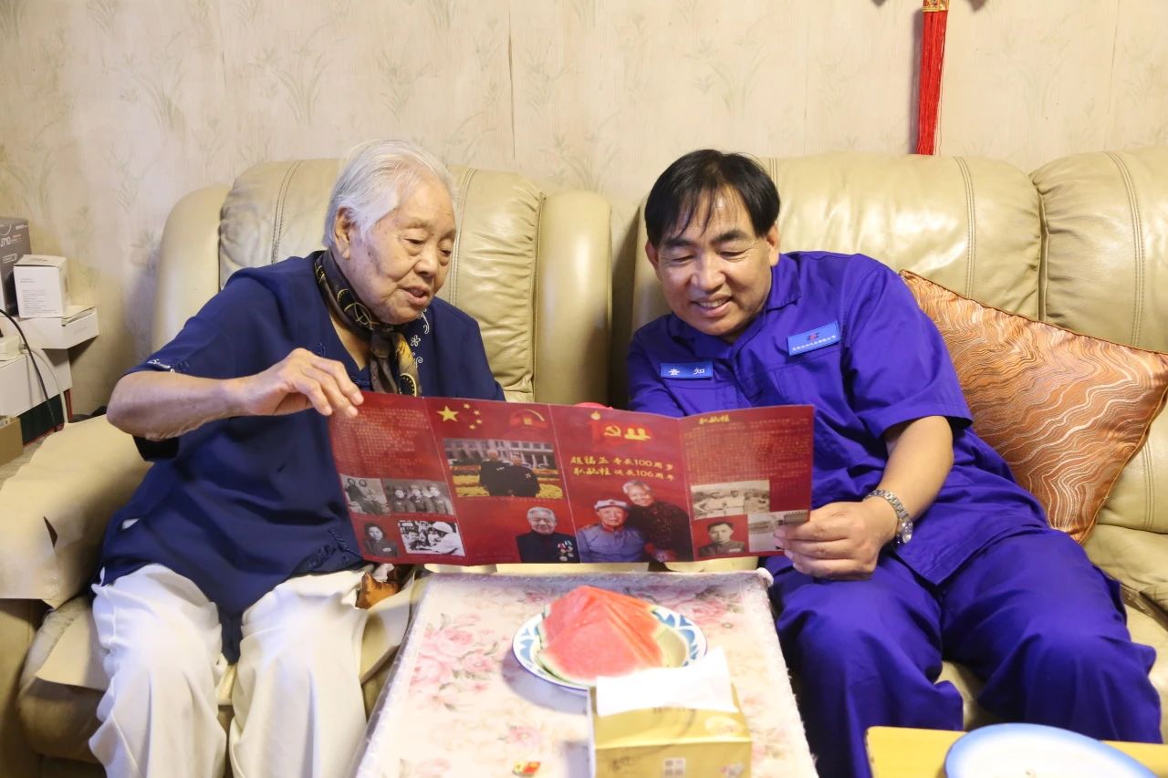 在趙福玉家中,查知親手將紀(jì)念章送到老干部手中,并和老人促膝交談,詳細(xì)詢(xún)問(wèn)她的生活起居和身體狀況,認(rèn)真傾聽(tīng)老同志回憶烽火歲月的經(jīng)歷,以及對(duì)公司發(fā)展歷程的感悟,對(duì)如今幸福生活的感想。